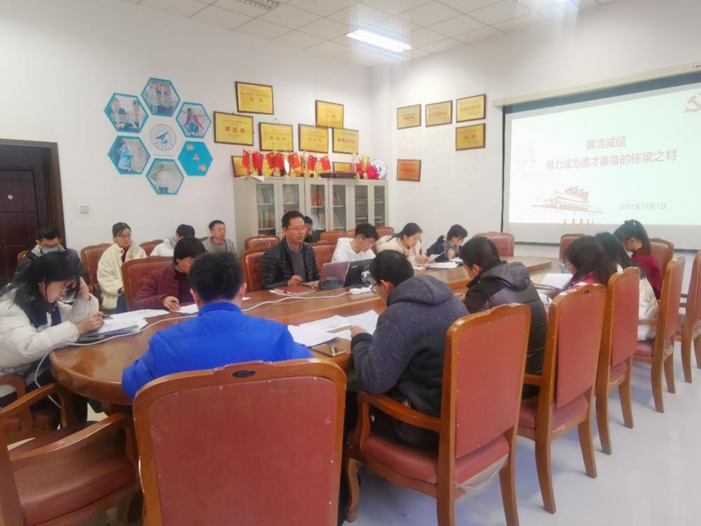 12月1日,在beat365中文官方网站130会议室,beat365中文官方网站党委副书记万海东讲授了“廉洁诚信——努力成为德才兼备的栋梁之材”主题党课。学院党委组织员李霞、辅导员高云和全体学生党支部书记参加了本次廉洁诚信教育主题党课。