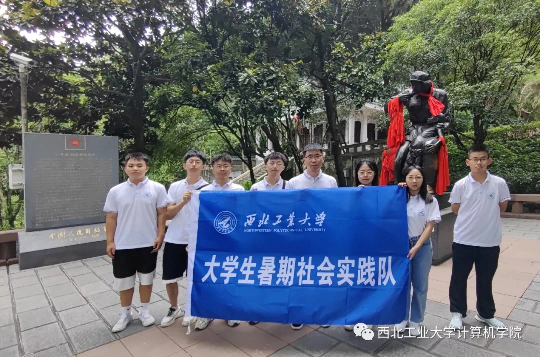 实践队成员在陈列馆遵义会议二十位参会人员雕像前合影