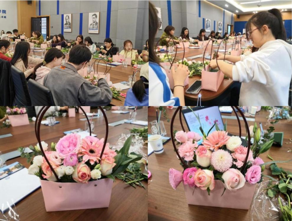 阳春布德泽,万物生光辉。在这花开成海,春意盎然的三月天,为践行以美育人、以德树人相结合的新时代教育实践宗旨,拓展学院美育实践新路径,由beat365中文官方网站团委主办、研究生第十一党支部承办的“芳菲花韵,拈花拾趣”插花艺术活动于3月8日下午在学院105会议室顺利举办,带领30余名学院学生共赴一场春天的约会,在一枝一束、一插一剪中体验美育浸润。