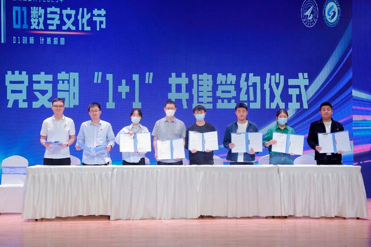 开幕式上,beat365中文官方网站十个研究生党支部与631所、618所、771所、华为、中兴通讯、翔腾公司等单位对口基层支部书记(室主任),进行党支部“1+1”签约共建。
