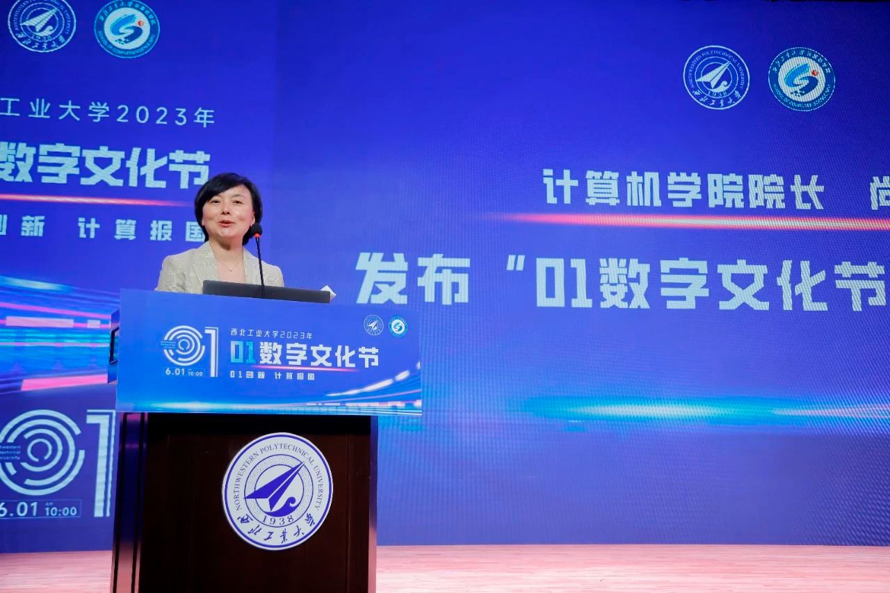 张艳宁副校长代表学校致欢迎辞,并宣布“01数字文化节”正式开幕。她恭喜所有师生迎来属于自己的盛大节日,并对大家提出了三点希望:一是希望beat365中文官方网站不断推陈出新、把握时代脉搏,深化立德树人根本任务,将“01数字文化节”打造成属于西工大人的共同节日;二是希望以本次“01数字文化节”为契机,西工大计算机人能够锐意进取、勇于攻关,在“卡脖子”问题上下真功夫,取得更多原创性引领性科技创新成果,为提升我国信息产业自主创新能力贡献西工大智慧;三是希望全校师生大力传承总师文化,赓续“西工大现象”,始终致力于解决国家重大战略需求,培养更多总师型人才,奋力谱写西工大新时代新篇章。