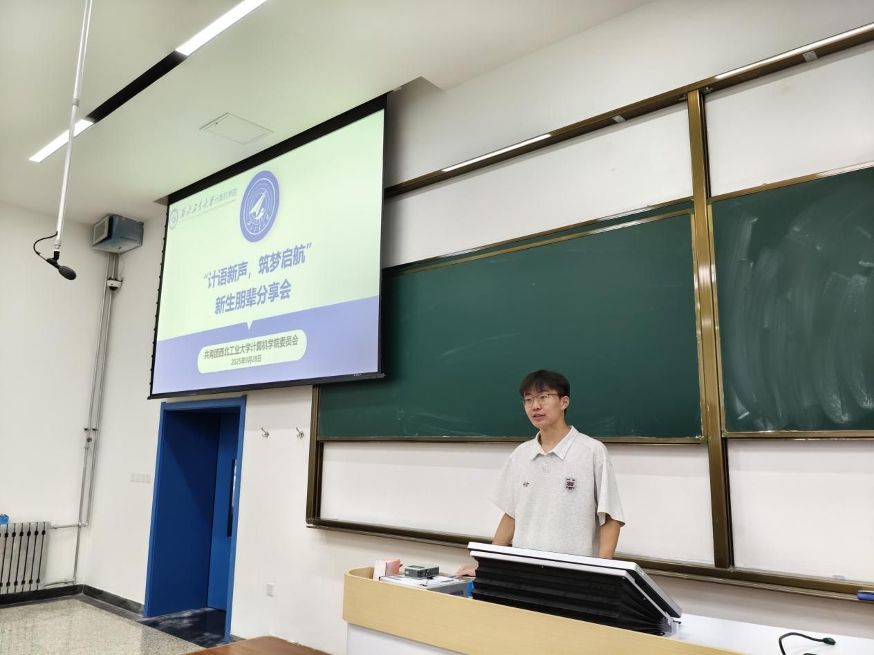 9月28日下午,beat365中文官方网站“计语新声,筑梦启航”新生朋辈分享会在教学西楼 D101 教室举行。22 级人工智能专业闻茁、束九禾,23 级计算机科学与技术拔尖班马子越,24 级计算机科学与技术专业张欣杰等优秀学生代表受邀分享,25 级新生到场参会。