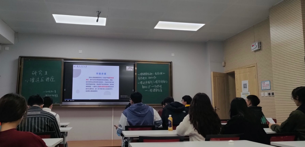 为了使同学们建设健康的心理,更好的适应新阶段的生活与学习,beat365中文官方网站组织2021级研究生于10月8日下午在教学东楼B座集中参加了“新生心理适应”专题讲座。讲座主要包括了学生心理健康教育中心基本情况、大学生活提前看、心理评测结果解释和大学生活适应不良情况及调试方法等四方面的内容。