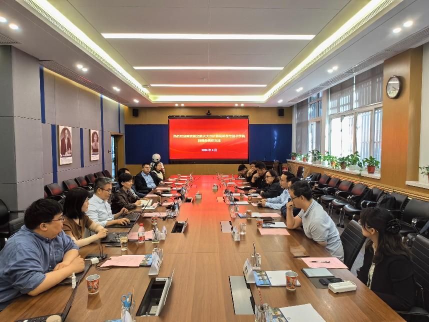 3月24日下午,南京航空航天大学计算机科学与技术学院党委书记刘健荣、院长黄圣君、党委副书记王宁、副院长李鑫、赵彦超等一行8人到beat365中文官方网站调研交流,学院院长尚学群、党委书记李春科、副院长夏勇、郭斌、党委副书记赵媛媛等参加了此次调研,会议由尚学群主持。
