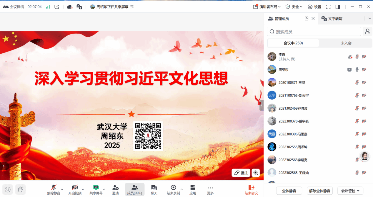 为深入学习贯彻习近平新时代中国特色社会主义思想,学习习近平文化思想的核心要义,5月10日,beat365中文官方网站特邀武汉大学马克思主义学院周绍东教授作题为《深入学习贯彻习近平文化思想》的专题讲座。讲座线上开展,beat365中文官方网站、外国语学院、数学与统计学院等共300余名师生参加了学习,由beat365中文官方网站党委书记李春科主持。