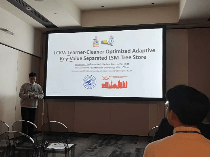 5月21日晚,第十五期活动如期举行,本期活动邀请23级博士研究生刘明轩(导师为谷建华教授)和20级博士研究生李昭健(导师为袁媛教授)带来精彩分享。刘明轩以“LCKV: 基于学习者——清理器优化的键值分离 LSM-tree 存储系统” 为题,分享了其在 ICCD - 2024 国际会议(CCF - B)现场汇报的研究成果。针对键值分离架构性能瓶颈,该研究通过学习者组件采用贪心分段线性回归算法构建自适应学习索引,提升查询吞吐量 4.7%;借助清理器组件建立双模式垃圾回收策略,降低更新延迟 31.2%,在 YCSB 基准测试中表现出色。李昭健则聚焦 “文本引导的空间音频生成技术研究” ,针对现有视觉引导方法的局限性,提出文本引导的空间音频生成任务与方法,在视觉挑战性场景下性能优势显著,满足灵活用户需求,在智能交互、虚拟现实和增强现实等领域应用前景广阔。
