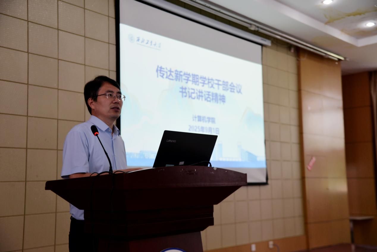 院长尚学群传达了学校暑假务虚会和新学期干部会议精神,带领大家集体学习了宋保维校长《优化学科专业布局 推动“总师型”人才培养》、李言荣书记《关于我校“十五五”规划中的几个问题》两个报告的主要内容,并回顾总结了学院上年工作,布置安排了新学期学院的重点工作和任务。