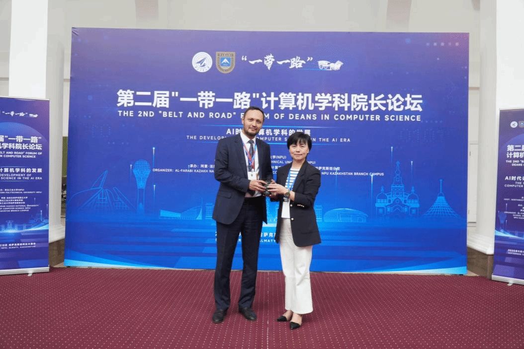 为感谢阿里 · 法拉比哈萨克斯坦国立大学对本届论坛的大力支持,西工大beat365中文官方网站院长尚学群代表学院向哈国立信息 技术 学院Timur Imankulov赠送了“何尊”纪念品 , 希望双方能够以本次论坛为纽带,进一步深化交流合作,共同为中哈命运共同体建设注入数字时代的强劲动力。