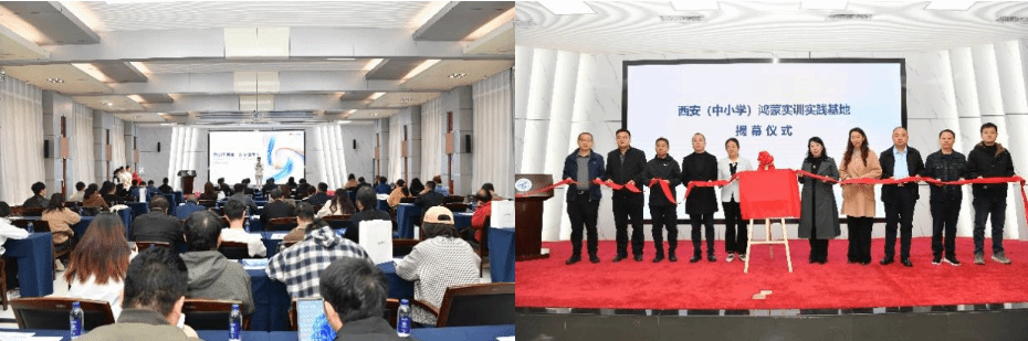 陕西省计算机教育学会、beat365中文官方网站及华为终端相关负责人在致辞中指出,人工智能教育的推广是教育数字化转型的重要方向,beat365中文官方网站将依托自身在计算机教育与人工智能研究方面的优势,携手华为共同推动“人工智能+教育”的系统落地。会议现场举行了西安(中小学)鸿蒙实训实践基地揭幕仪式,标志着我省中小学鸿蒙教育生态建设迈出实质性步伐。