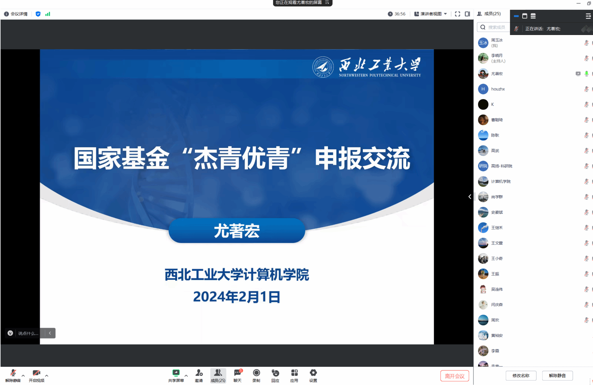 接着,尤著宏教授介绍了国家自然科学基金的项目定位和分类等情况,他结合自身申请杰青和优青的经验,从申请书的选题方向、题目和摘要、研究内容和目标、特色与创新、研究基础与工作条件等方面,全方位、多角度地对项目申报中的注意事项进行详细指导。与会教师就个人在基金申请过程中遇到的疑难问题进行了提问,尤著宏进行了详细解答,给出了很好的建议,大家都表示获益匪浅。