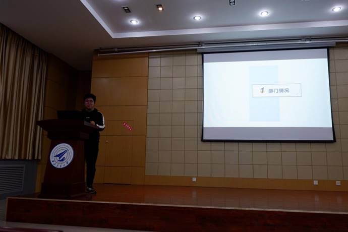 大会第二项,各部门总结中期工作。办公室,外联部,组织部,体工部,文艺部,生活学创部,宣传部,就业实践部和新媒体依次进行中期总结。通过回顾上学期举办的如迎新晚会,简历大赛,一二九红歌比赛,游园会等活动,部长们反思了部门在活动中的不足,并从前期准备,中期宣传,部门配合和后期收尾等方面提出改进措施,从而为下学期各自部门特色活动的开展做出准备。