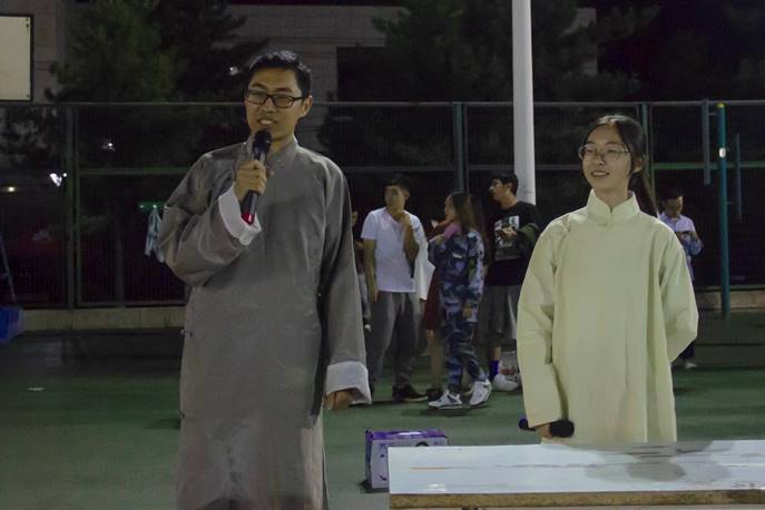 九弦音舞蹈队的学长和学姐们的舞蹈,舞进了每个学弟学妹的心里,跟随着舞蹈一起律动;九弦音礼仪队为学弟学妹带来一场精彩绝伦的球场SHOW的同时,Bbox队的学长也用他们的节拍带来了一场听觉盛宴;在BP街舞社的学长学姐们带来一场十分具有律动感的表演时,学弟学妹们都显示出了对街舞极大的喜爱与兴趣;由大艺团相声队带来的相声《论捧逗》基于原作的同时,也加上了自己的特色,笑料十足,令同学们捧腹不断;九弦音话剧队携手我们可爱帅气又幽默诙谐的教官,一同带来的话剧生动形象,引动了全场可爱新生们的笑声,现场一片欢声笑语。