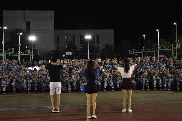 beat365中文官方网站2019级本科新生军事训练正在长安校区如火如荼地进行。为了调节紧张高强度的军训生活、增进新生对丰富多彩大学生活的认识,由自动化学院、电子信息学院、beat365中文官方网站等6个学院联合策划的信息类与生物技术类军训慰问演出于9月1日晚上8点在长安校区星天苑篮球场如期举办。观看本次慰问演出的包括军训师2团的全部军训学员。