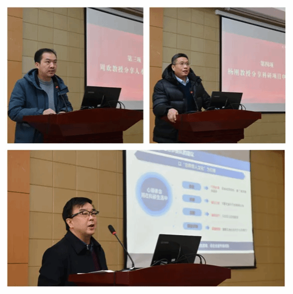 周欢教授、杨刚教授、翟正军教授分别就国家级人才申报、重大科研项目申报和指导学生参加中国国际大学生创新创业大赛做分享和经验介绍。