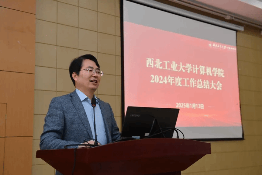 李春科代表学院向全院师生表达感谢和新春祝福,寄语计算机人,锚定学校发展“127”近期目标和“天下工大、世界三航”远景目标,以“永远在一线、永远在状态、永远在前列”的工作状态,奋力推动2025年各项工作争先进位,再创辉煌!